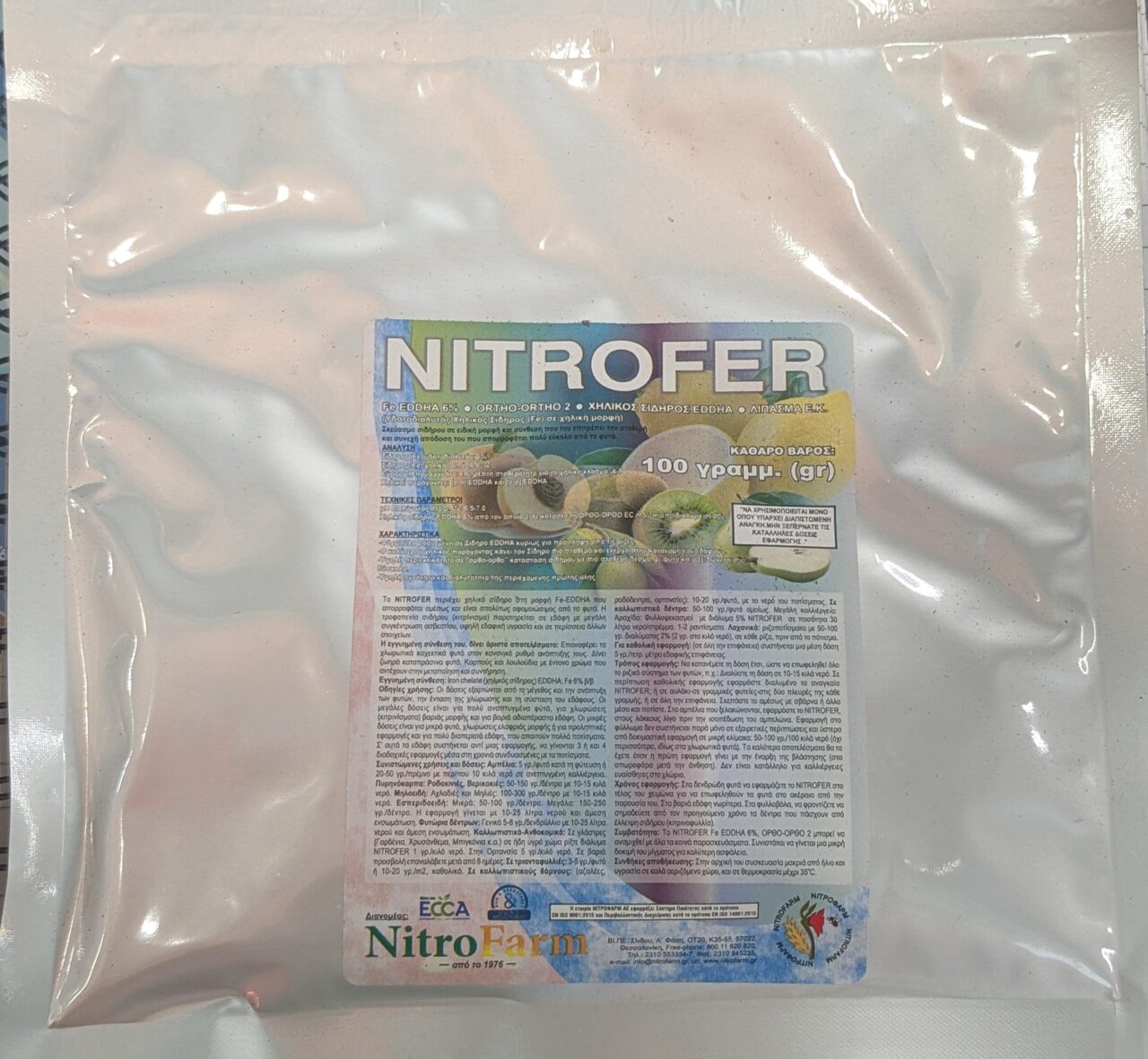 Το NITROFER περιέχει χηλικό σίδηρο στη μορφή Fe- EDDHA που απορροφάται αμέσως και είναι απολύτως αφομοιώσιμος από τα φυτά. Η τροφοπενία σιδήρου (κιτρίνισμα) παρατηρείται σε εδάφη με μεγάλη συγκέντρωση ασβεστίου, υψηλή εδαφική υγρασία και σε περίσσεια άλλων στοιχείων.