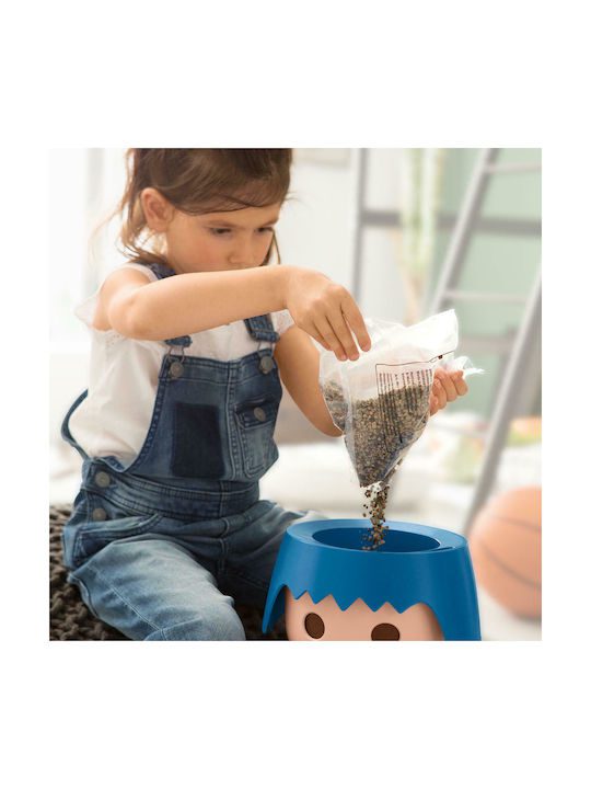 Τα μεγάλα στρογγυλά μάτια, χαρακτηριστικό γνώρισμα μιας φιγούρας Playmobil, δείχνουν τη στάθμη του νερού στη δεξαμενή, για να ξέρουν τα παιδιά πότε είναι ώρα να ποτίσουν το φυτό τους. Όταν τα διαδραστικά μάτια γίνουν γαλάζια, σημαίνει ότι η δεξαμενή νερού είναι γεμάτη.